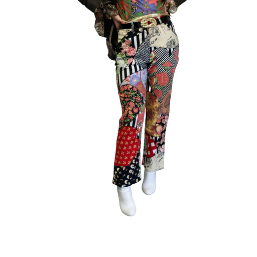 Moschino Floral Patchwork Pants Vintage Product Statement piece to an outfit Very eye catching pants Incredibly soft Projected in Italy Imported fa...