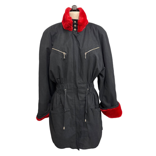 A timeless piece of fashion history, this Karl Lagerfeld coat combines a striking red faux fur accent with a sleek black design. Made in West Germa...