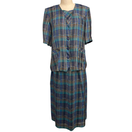 View full detailsVintage Neu Frau Womens Plaid Two-Piece Dress Set With Short-Sleeve Jacket and Midi Skirt Size 13
