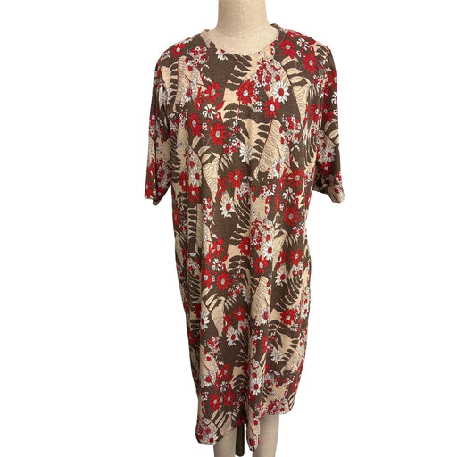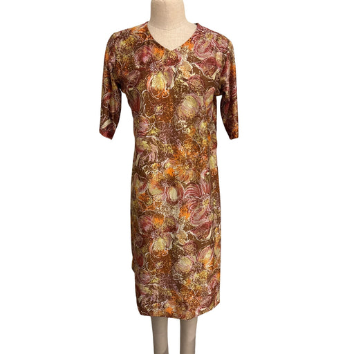 Vintage Floral and Fern Print Shift Dress Short Sleeve Brown/Red/Beige Retro Style All-Season Fundraiser for Sustainable Fashion Program