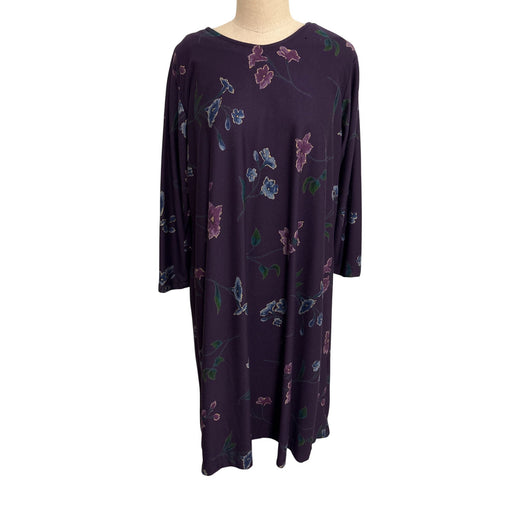 Vintage Purple Floral Print Tunic Dress 3/4 Sleeves Soft Fabric Relaxed Fit Fundraiser for Sustainable Fashion Education Program
