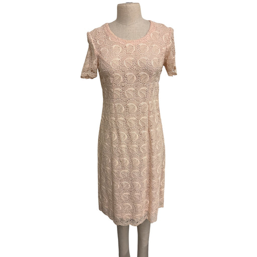 Vintage Handmade Blush Pink Lace Short Sleeve Sheath Dress Scalloped Hem, Fundraiser for Sustainable Fashion Education Program