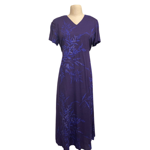 Vintage Norton McNaughton Petites Purple Floral Maxi Dress S V-Neck Short Sleeve Tie Back Rayon Fundraiser for Sustainable Fashion Education