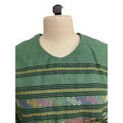 Green Handmade Vintage Handwoven Ethnic Tunic Dress With Geometric Patterns & Sleeveless Design