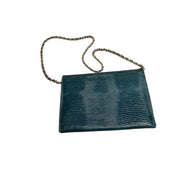 Blue Envelope Clutch Embossed Leather Bag Vintage Accessories