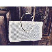 White Mesh Metal Purse Handbag Retro Bag Golden Framed Handle Vintage Accessory