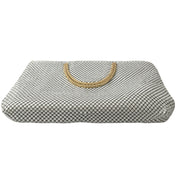 This stunning white metal mesh handbag is a true vintage treasure from the 1980s, expertly crafted with a distinctive retro aesthetic. Its hard-framed golden metal duo handles offer versatile styling options: fold them down to create a sleek clutch for evening occasions or carry the bag upright using the dual handles for a sophisticated daytime look.