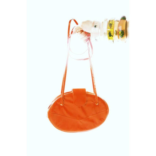 Add a splash of vibrant charm to your wardrobe with "Allure's Scarlet Elegance: Gorgeous Oval-Shaped Red Leather Handbag". This exceptional accesso...