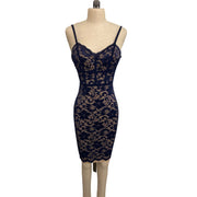This B. Darlin lace bodycon dress combines elegance with a modern touch. Its navy and nude palette creates a striking contrast, ideal for evening events. The fitted silhouette flatters, while the intricate lace overlay adds a touch of romance.