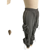 These Boohoo cargo pants feature a contemporary design with ruched details and drawstrings, offering a stylish and adjustable fit. Made from lightweight polyester, they are perfect for casual wear, providing comfort and a trendy look. The elastic waistband ensures easy wearing and a secure fit.