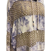 This bohemian-style women's poncho by brand name "Free People" features a unique blend of tie-dye and lace patterns, adding a touch of elegance to casual wear. The wide neckline design offers comfort and versatility, making it suitable for relaxed outings, a stroll at the beach or cozy days indoors. Its loose fit and stylish details make it an attractive addition to any wardrobe.