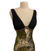 Vintage Dave & Johnny Sequin Beaded Empire Dress 1/2 Animal Print Polyester Spandex