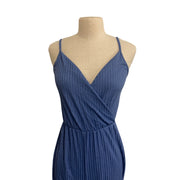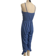Womens Blue Striped Sleeveless Jumpsuit With Tie Hem & V-Neckline