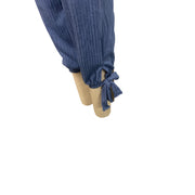This blue striped jumpsuit is designed with a flattering V-neckline and adjustable tie hem, offering a stylish and relaxed fit for casual outings.