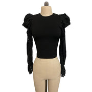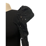 Zara Black Puff Sleeve Cropped Top With Eyelet Detail S