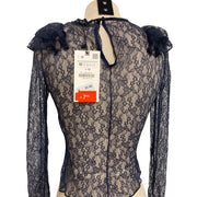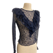 Zara Navy Lace Ruffle Long Sleeve Blouse S