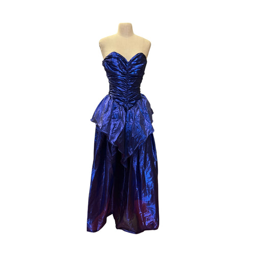 View full detailsThis exquisite vintage evening gown is a testament to the timeless elegance of formalwear, featuring a striking blue hue and a captivating silhouet...