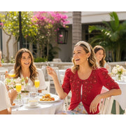 • Puffed short sleeves with gathered detailing