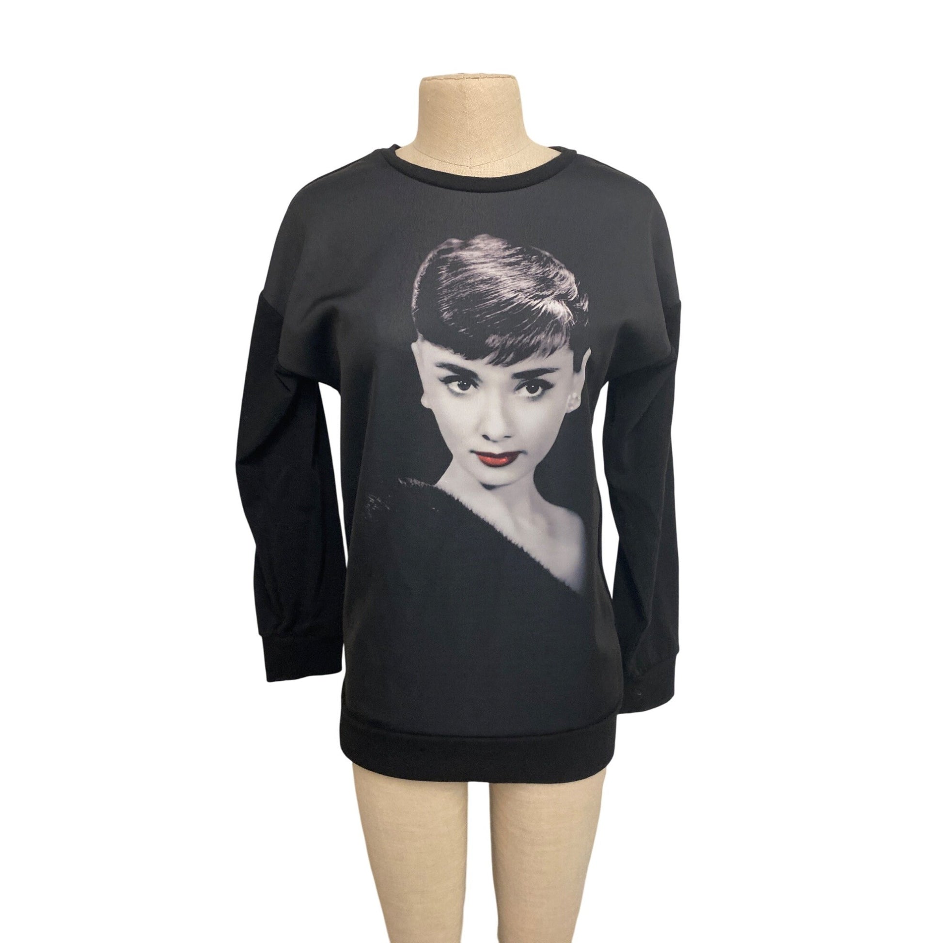 Audrey Hepburn Print Black Sweatshirt Celebrity Fashion Icon Top