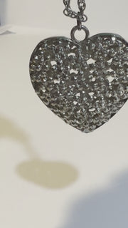 Big Shine Heart Pendant Necklace - A Floral Embrace in Silver Sparkle