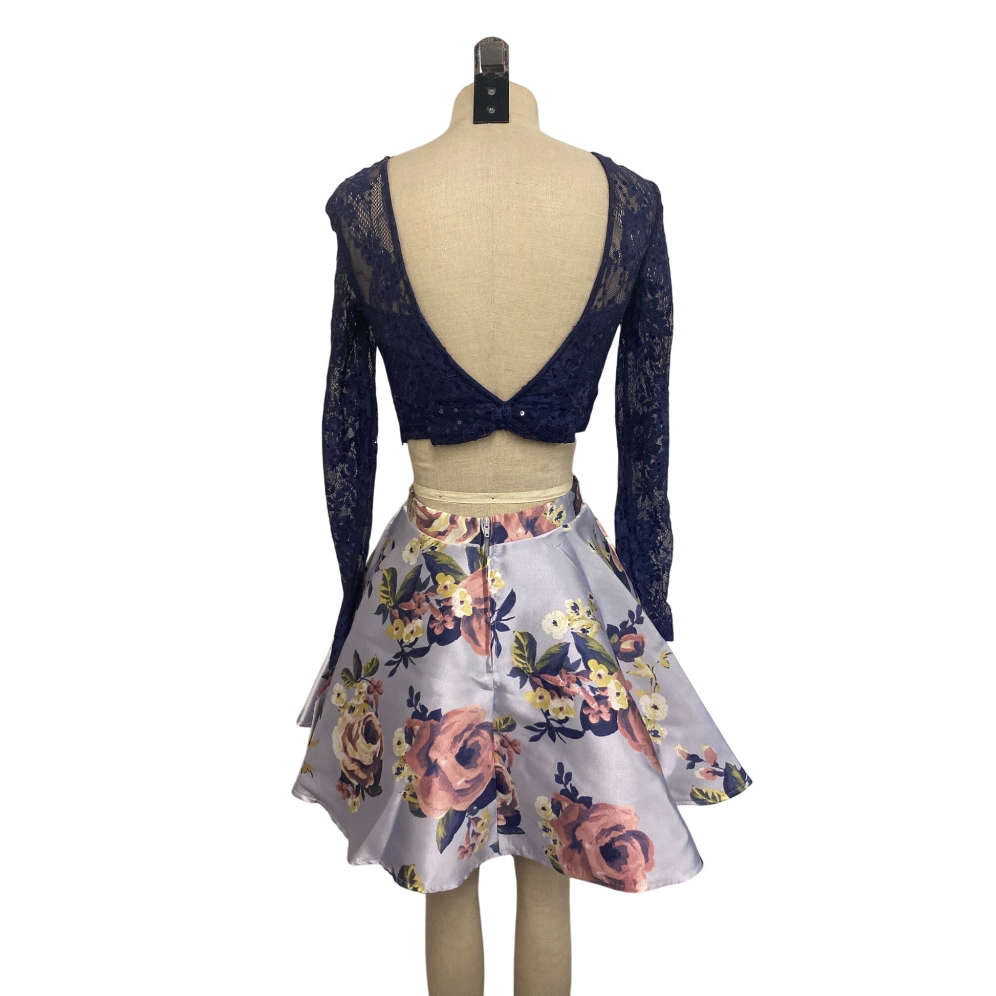 City Triangles 2-Piece Navy Lace & Floral Skirt Top Super Girlie Set Size 3 Juniors