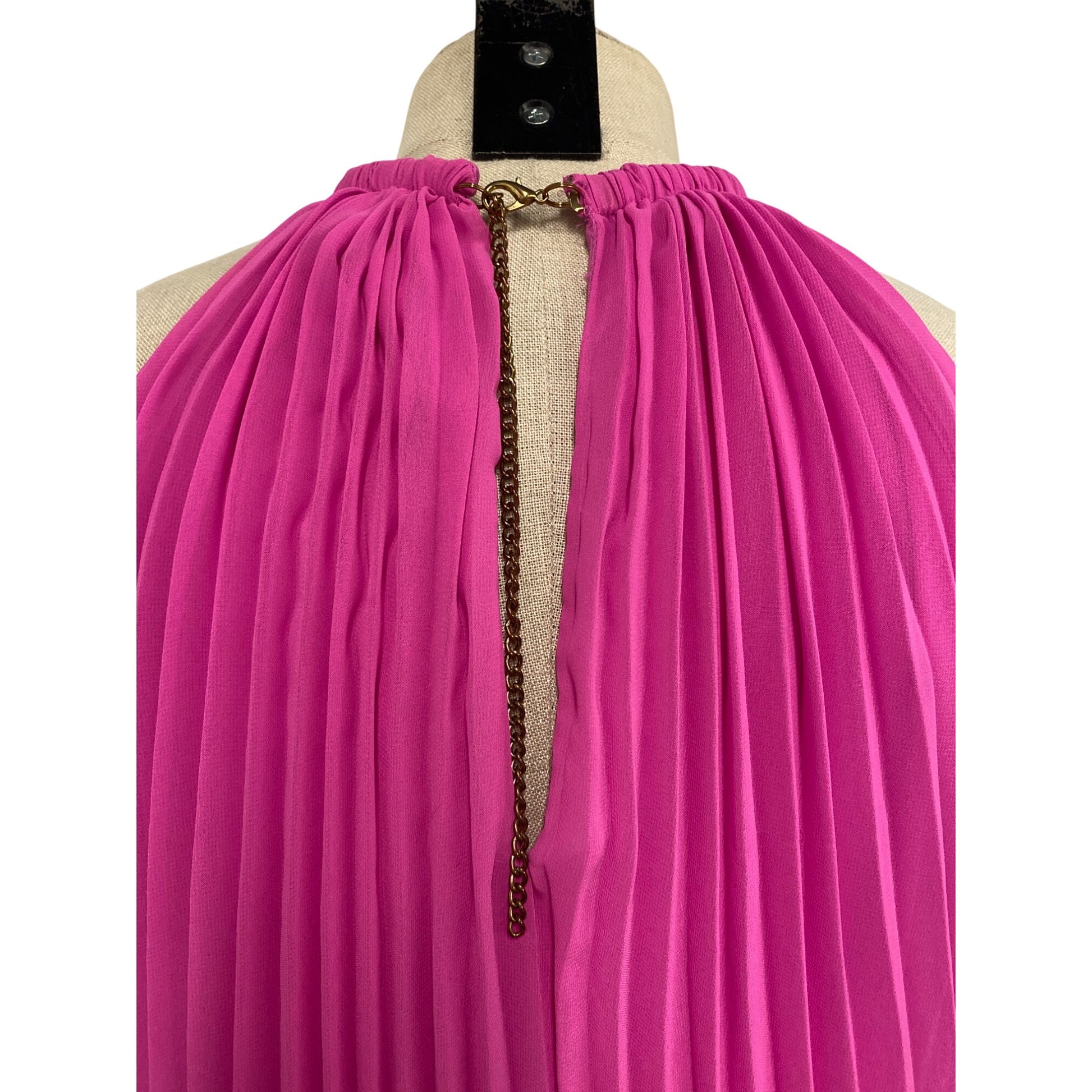 This elegant MSK pleated halter maxi dress is an exquisite piece for women that speaks sophistication. The vibrant pink shade and flowing design create a graceful silhouette suited for various events. The halter neckline with a gold-tone detail adds a touch of glam.