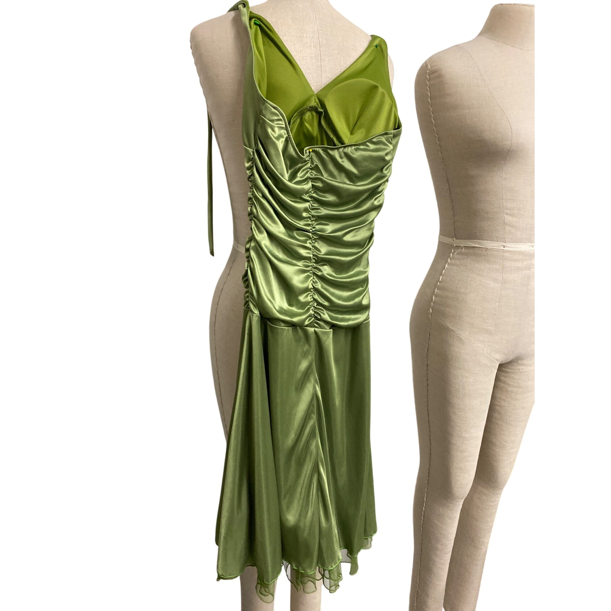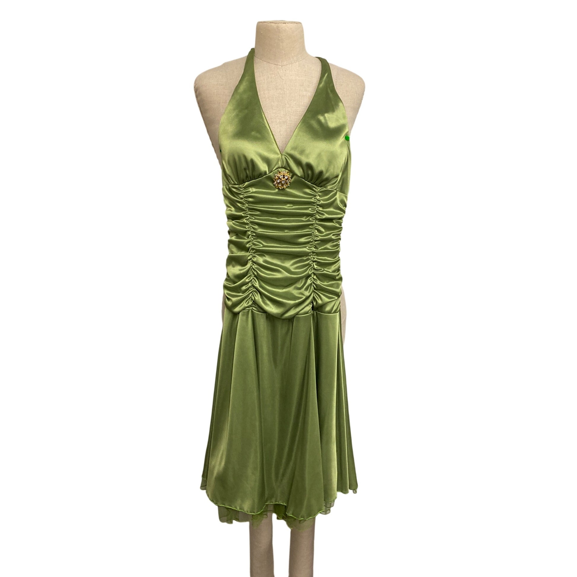 Ruby Rox Lime Green Satin Halter Dress With Brooch Detail