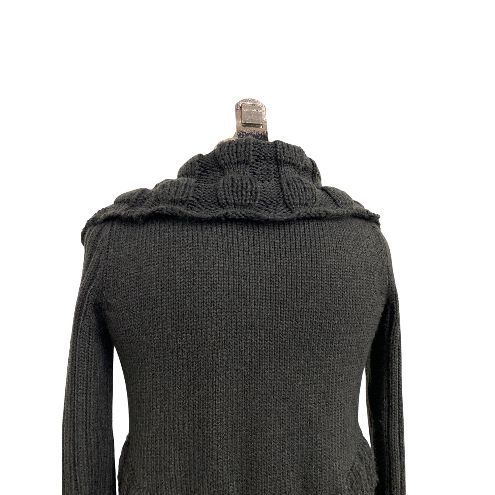 Spense Knits Chunky Knit Black Open Cardigan Shrug With Ruffle Trim & Tie Closure