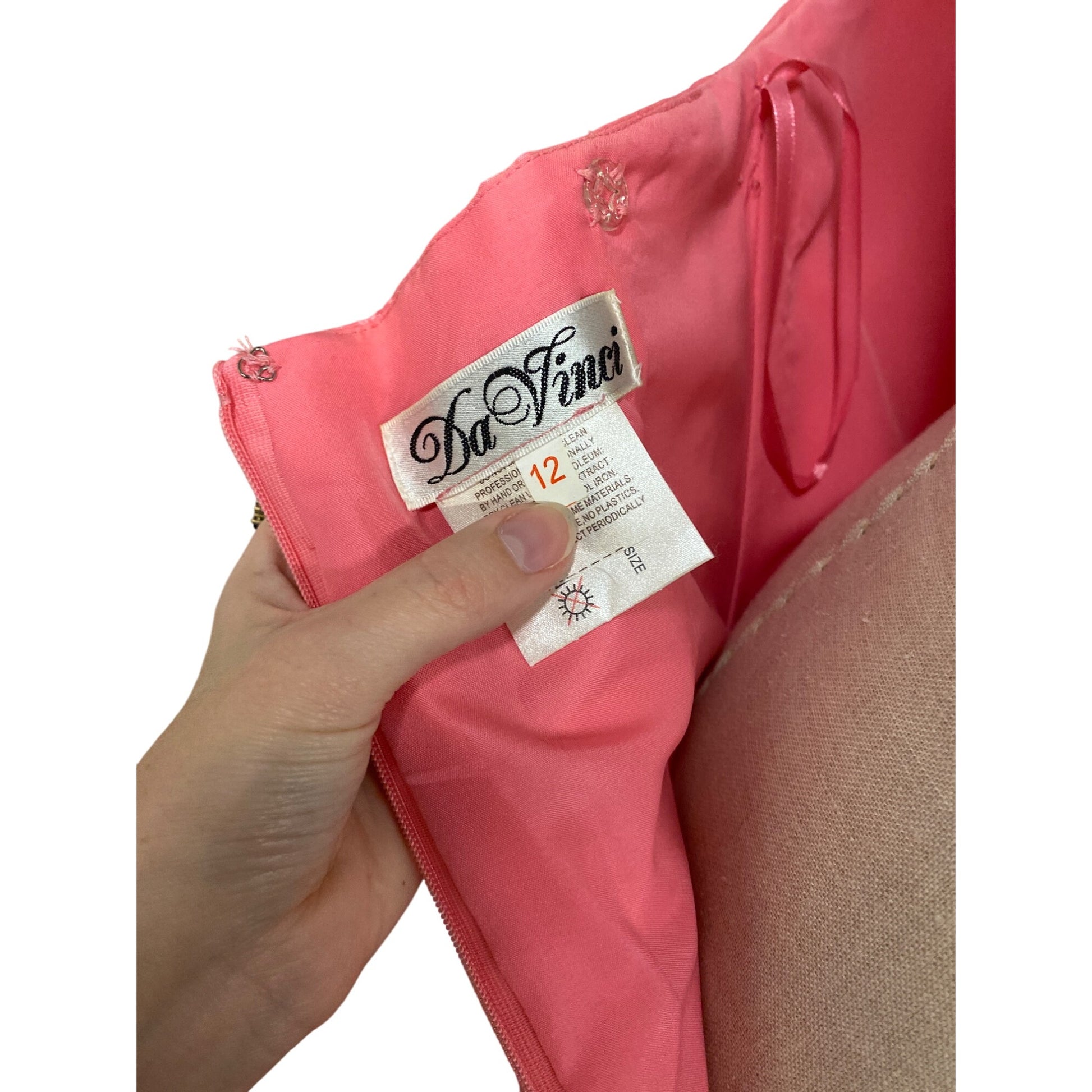 Vintage Da Vinci Women's Strapless Ruffled Satin Dress Bubble Gum Pink
