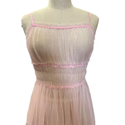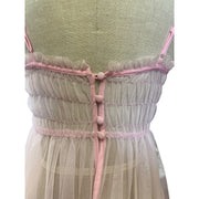 Vintage Pink Sheer Nightgown Dress With Ruched Waist Button Detail Darling Feminine Girlie and so Pretty