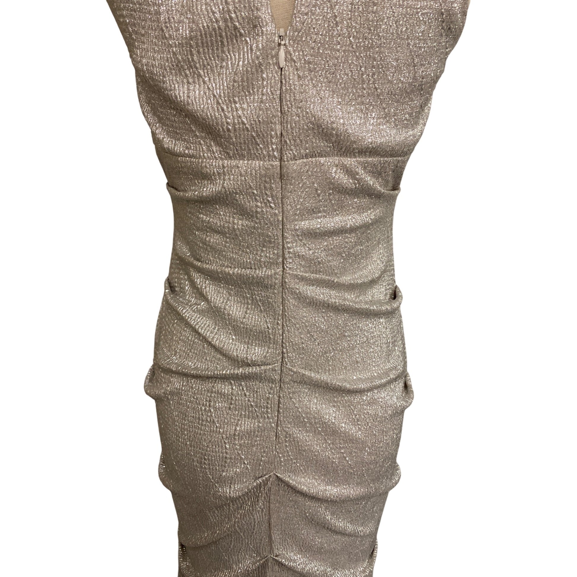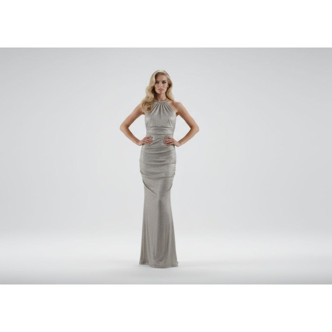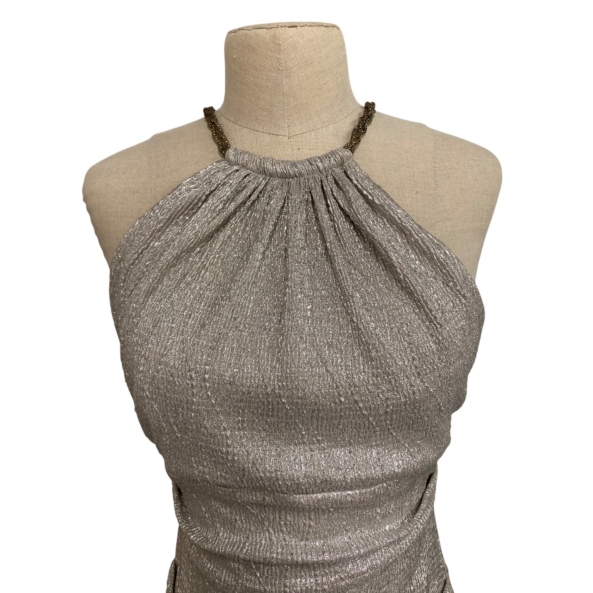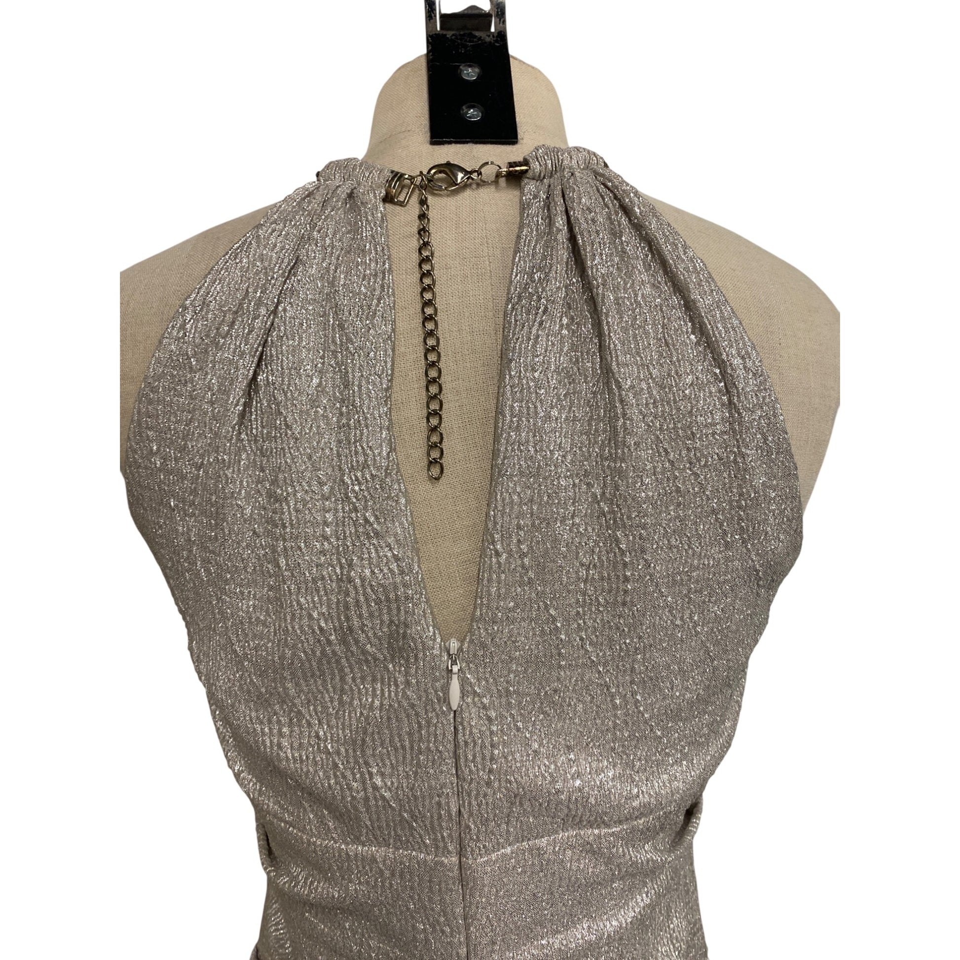 Xscape Silver Metallic Halter Evening Gown Size 6