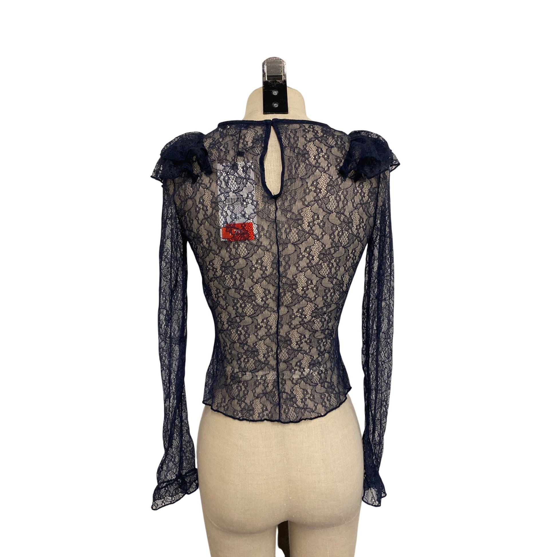 Zara Navy Lace Ruffle Long Sleeve Blouse S